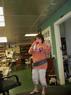 But NOT Linda!!! She must have had an upswing with her sugar. She made a hipster to carry her airgun out of wool. Telemarketers have pushed her a bit too far :) lol. She was making us laugh with taking orders for the carrier. (never a dull moment at Grant Street)